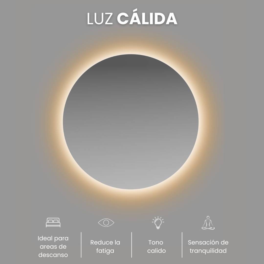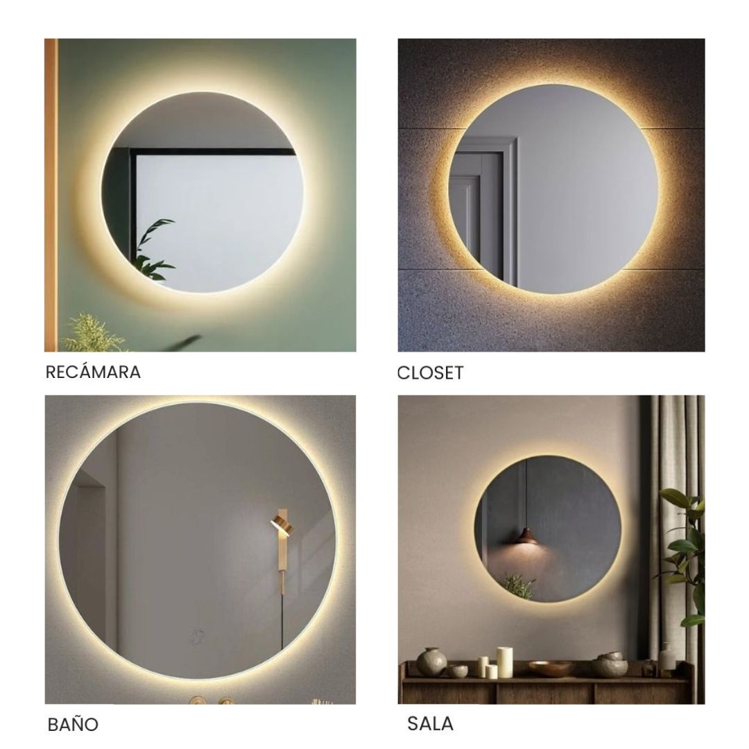 El espejo "Circular LUZ LED" es una pieza de diseño limpio y elegante, canto pulido y abrillantado que realza su estética minimalista. Su diseño versátil lo hace perfecto para interiores modernos que buscan un toque de amplitud y sofisticación. Ideal para salas, recámaras o vestidores, aportando luminosidad y profundidad al espacio. El Diseño cuenta con iluminación creando un efecto envolvente. Ideal para espacios que buscan serenidad sin renunciar al estilo. Elegancia minimalista que transforma el ambiente.