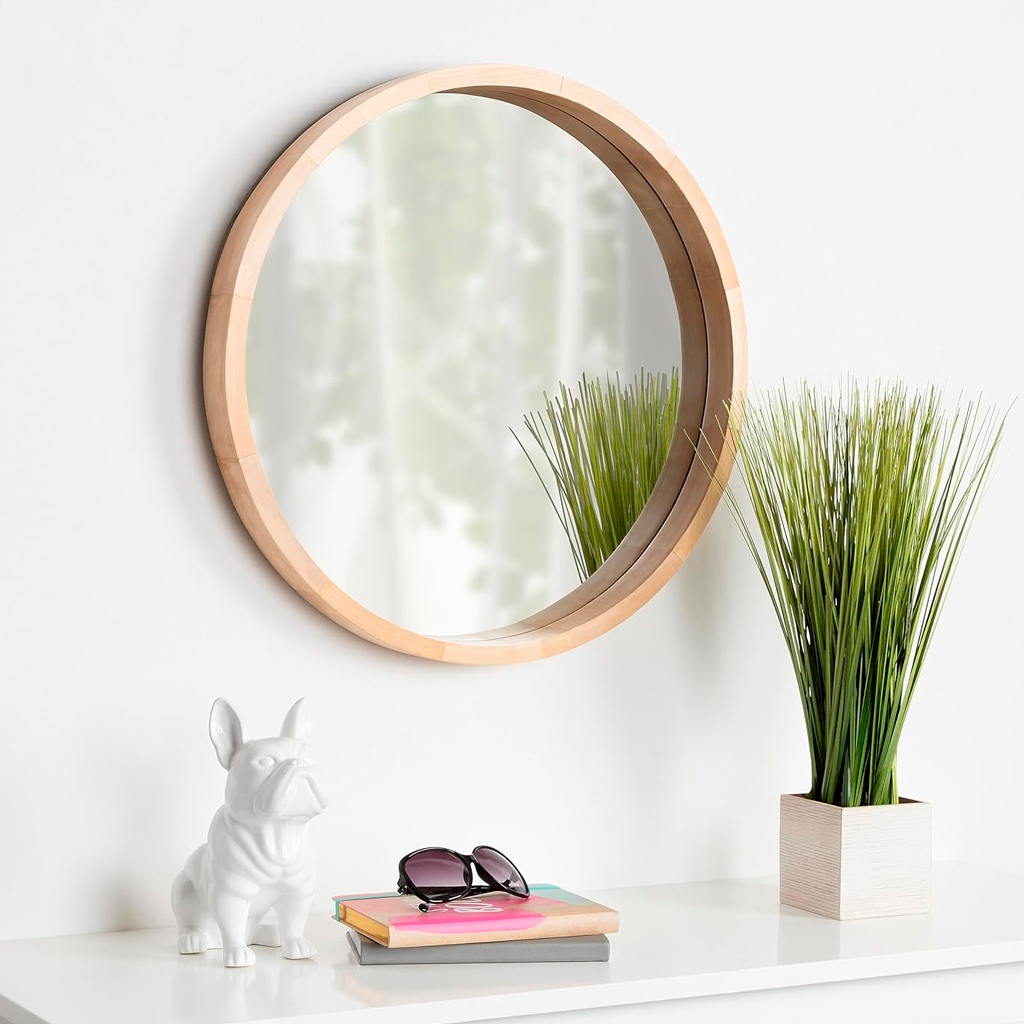 El espejo circular "Shenzu" es una pieza elegante que combina funcionalidad con diseño sofisticado. Su marco trabajado meticulosamente, resalta la belleza natural de la madera, aportando un toque cálido y orgánico al ambiente. Con su canto pulido, el reflejo se mantiene nítido y sin distorsiones, garantizando una experiencia visual de alta calidad.