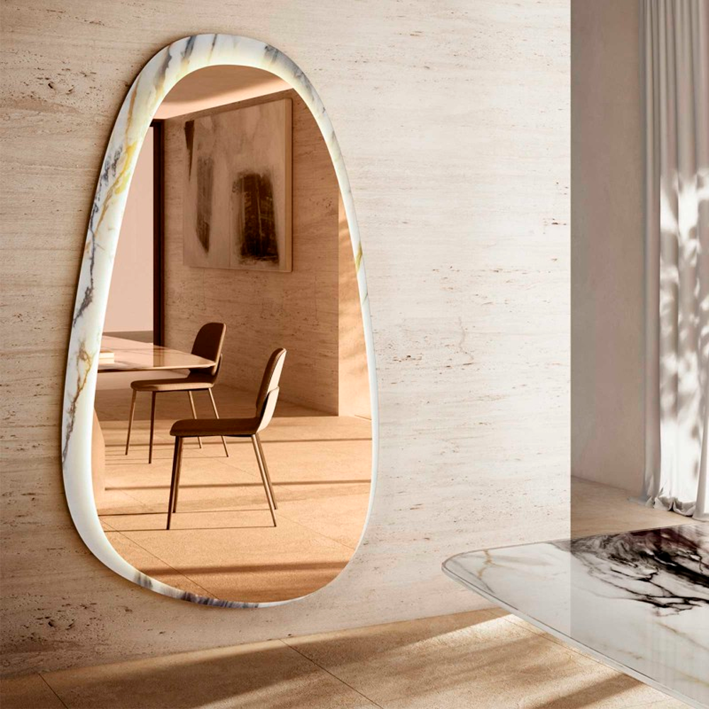 El espejo "Mirai" captura la esencia de lo atemporal, con un diseño único que refleja la luz de manera suave y elegante. Montado sobre una pieza de mármol meticulosamente seleccionada. Ideal para espacios que buscan un toque de sofisticación.