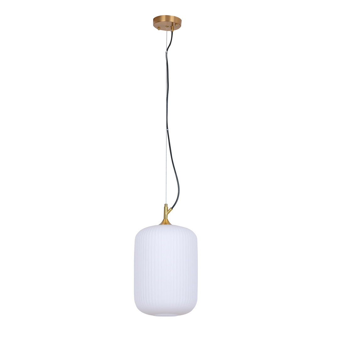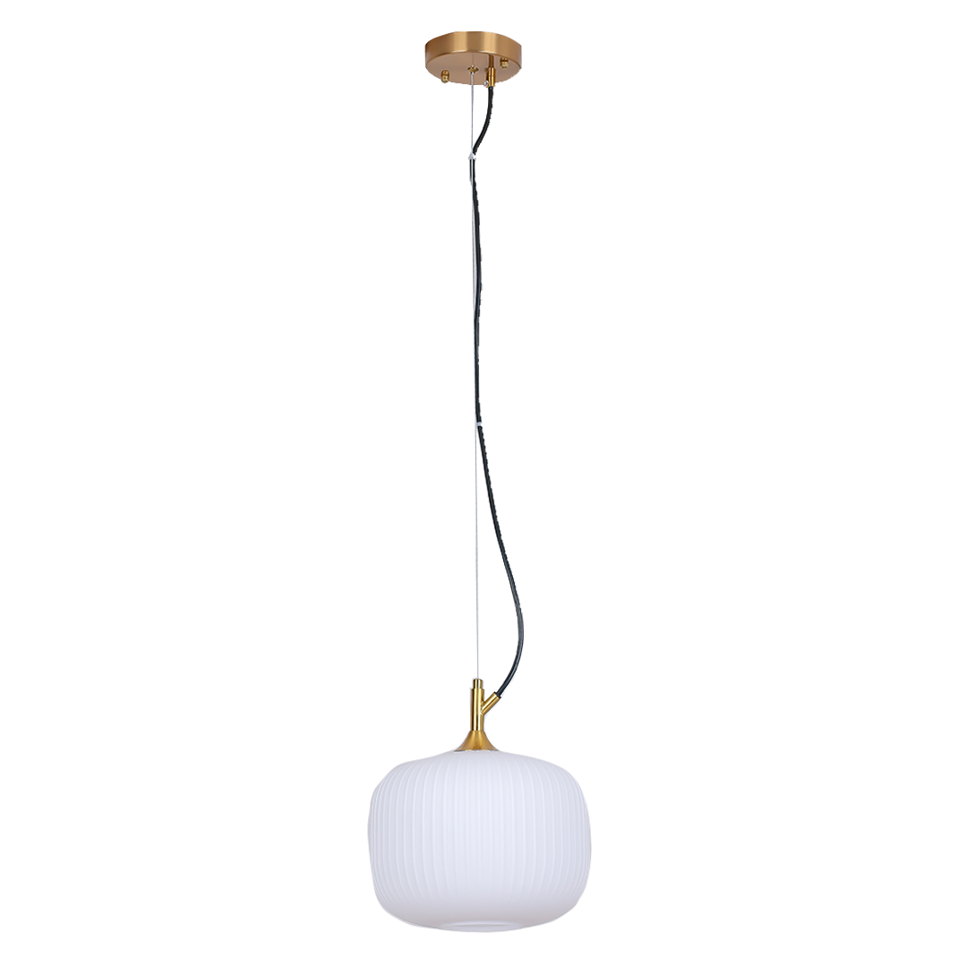La Lámpara Suan es un colgante de líneas suaves y acabado texturizado en vidrio opalino, coronado con un elegante detalle dorado. Su forma orgánica y su luz difusa lo convierten en una pieza perfecta para comedores, recibidores o incluso como acento en habitaciones. Su diseño evoca calma y armonía, ideal para espacios que buscan serenidad con estilo.