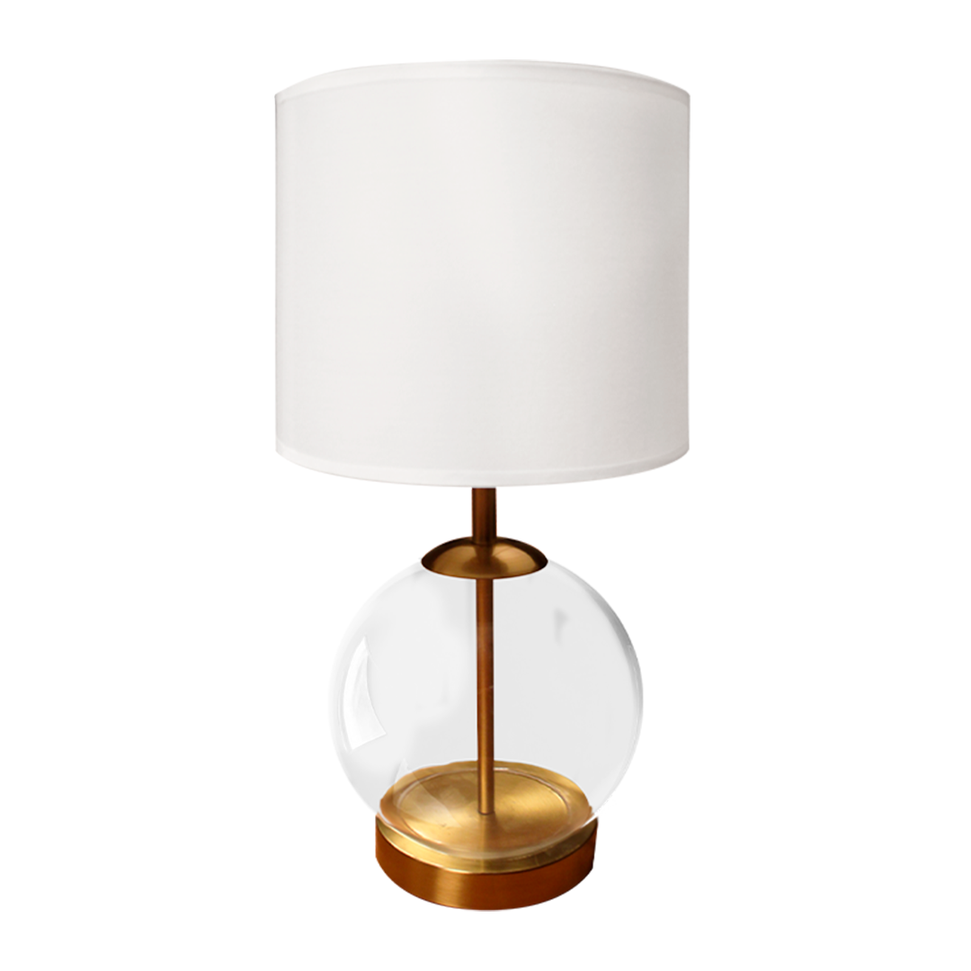 La "Lámpara Blanco" es una pieza elegante que combina la sofisticación de la base dorada con la claridad del vidrio, creando una atmósfera acogedora y moderna. Su pantalla de tela blanca complementa perfectamente el diseño, haciendo que esta lámpara sea ideal para mesas de noche, escritorios o cualquier espacio que necesite una iluminación suave y estilizada.