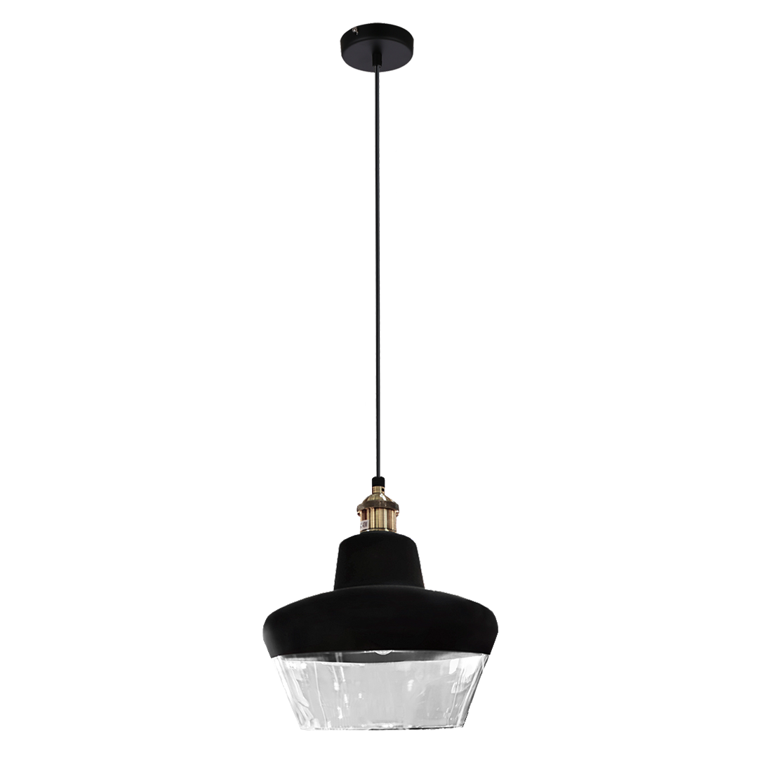 La "Lámpara Bomsus" presenta un diseño minimalista que destaca por su simplicidad y elegancia. Su soporte aislado en color negro y la visera semiabierta en vidrio ofrecen una estética contemporánea, perfecta para aquellos que buscan una pieza de iluminación que combine funcionalidad con estilo.