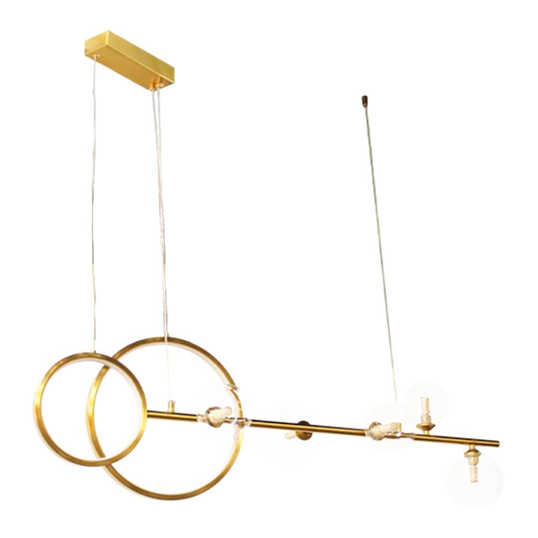 Con una altura ajustable, esta lámpara es ideal para iluminar comedores, salas de estar o áreas de trabajo, proporcionando una luz brillante y eficiente. Los focos esféricos distribuyen la luz de manera cálida, creando una atmósfera acogedora y moderna.