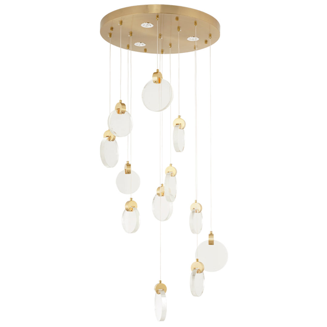Con su estructura colgante, esta lámpara es perfecta para iluminar comedores, salas de estar o pasillos amplios. La disposición asimétrica de los cristales aporta dinamismo y estilo, mientras que la base dorada le da un toque de lujo. La Lámpara Corsica es ideal para quienes buscan una pieza decorativa que también ofrezca una iluminación eficiente y deslumbrante.