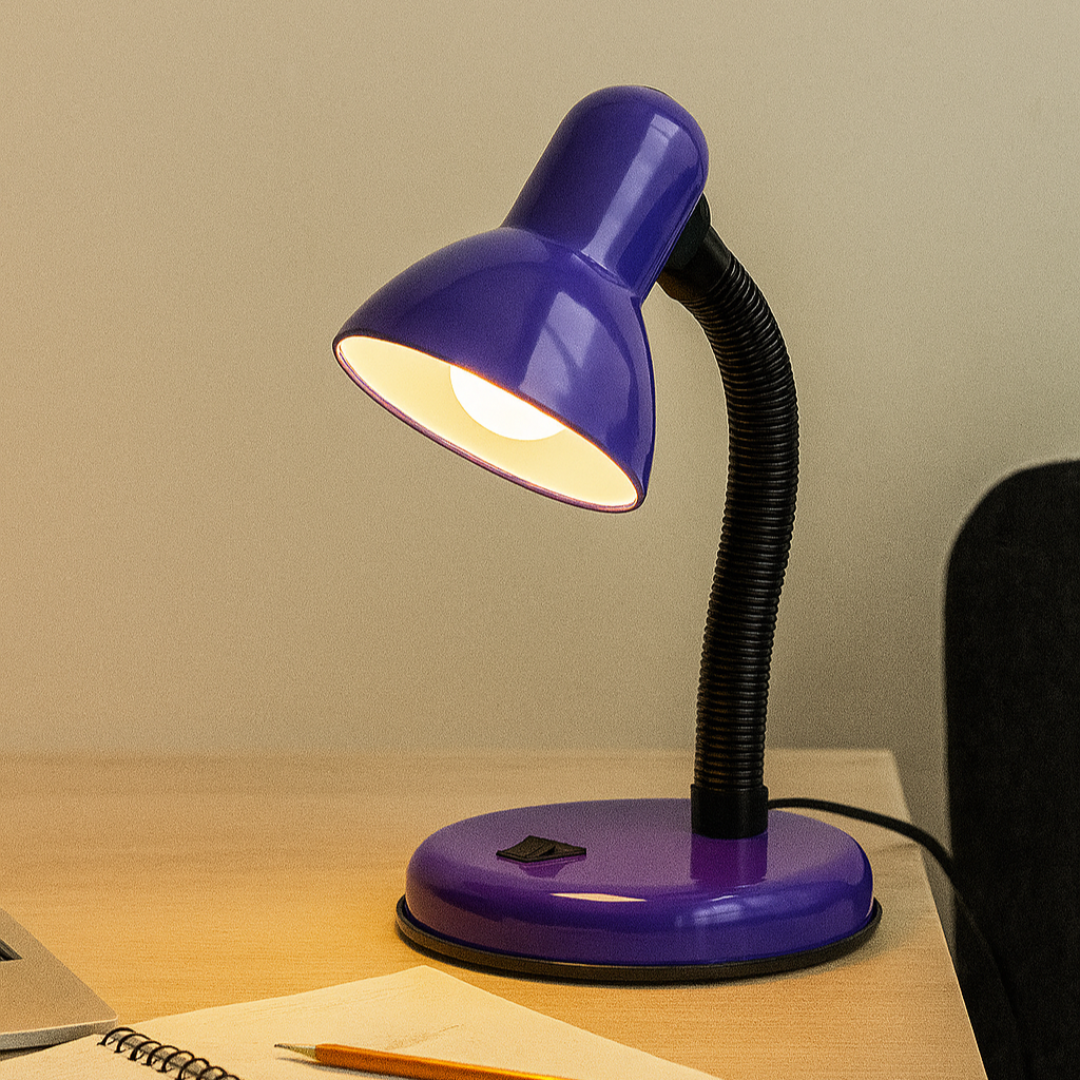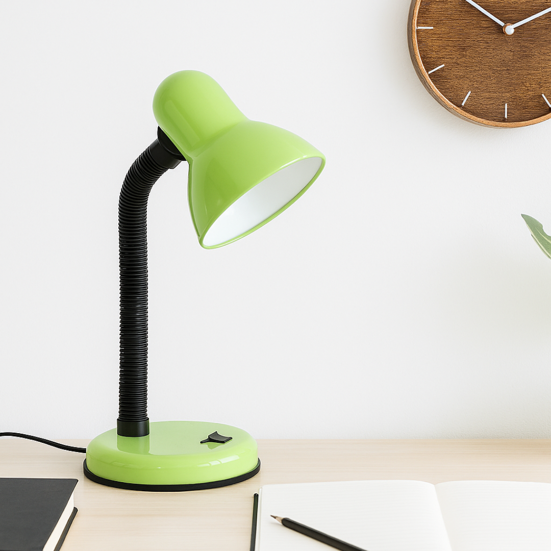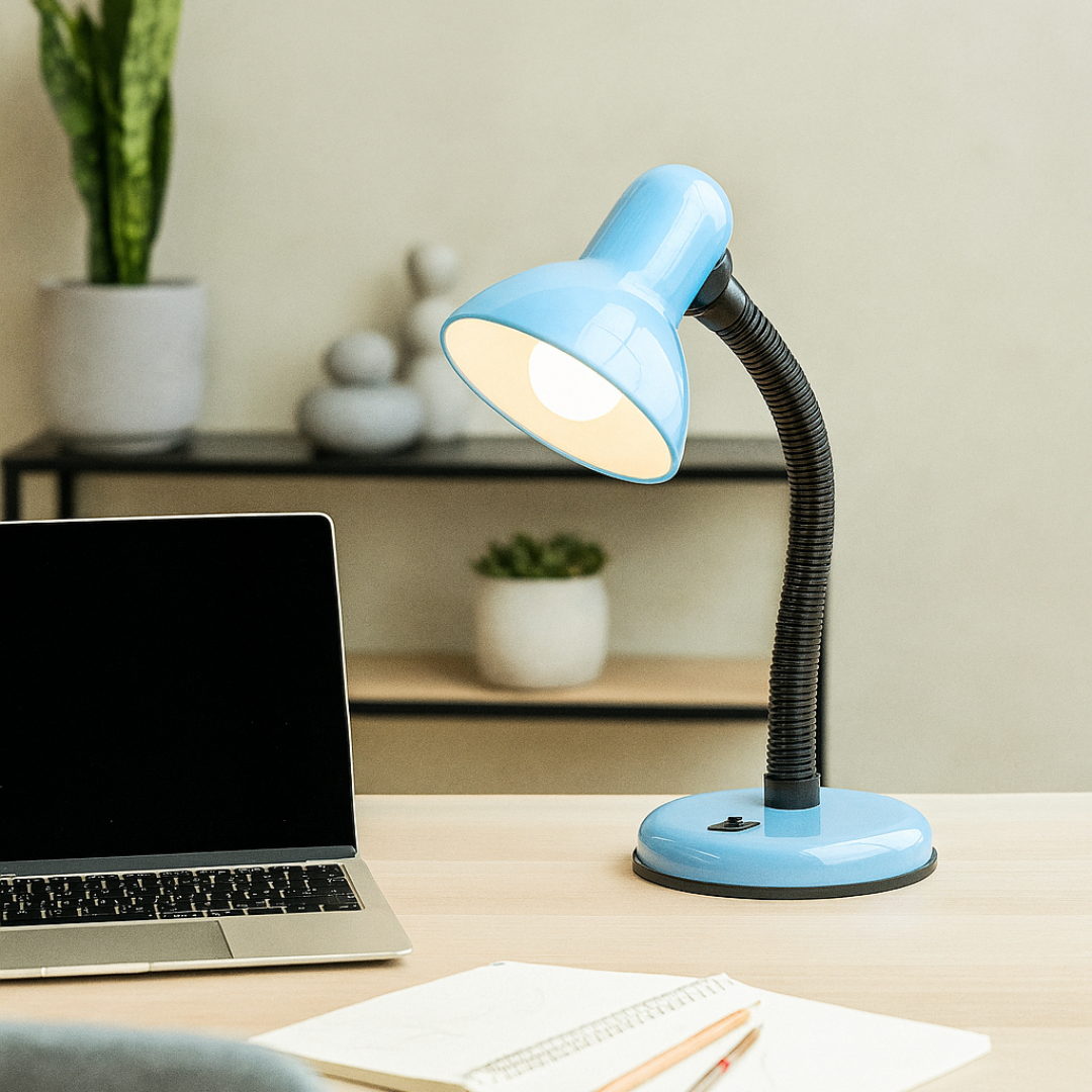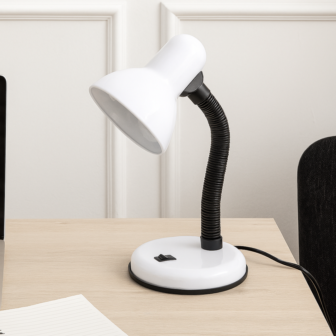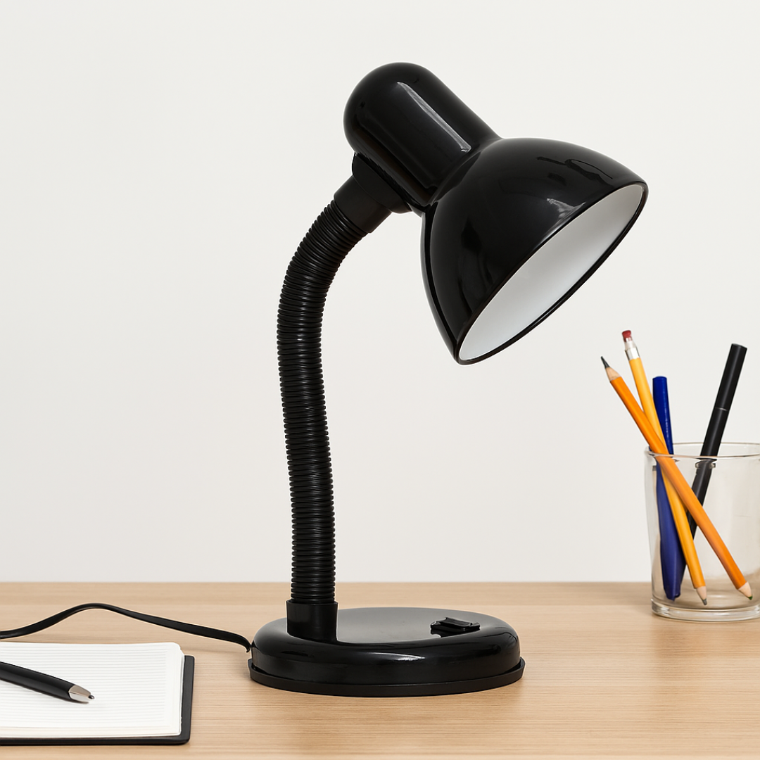 Ideal para estudiar, leer o trabajar con comodidad. Esta lámpara de escritorio ofrece una iluminación dirigida gracias a su cuello flexible que permite orientar la luz con facilidad. Su diseño compacto y moderno se adapta a cualquier espacio, ya sea en casa, oficina o estudio.