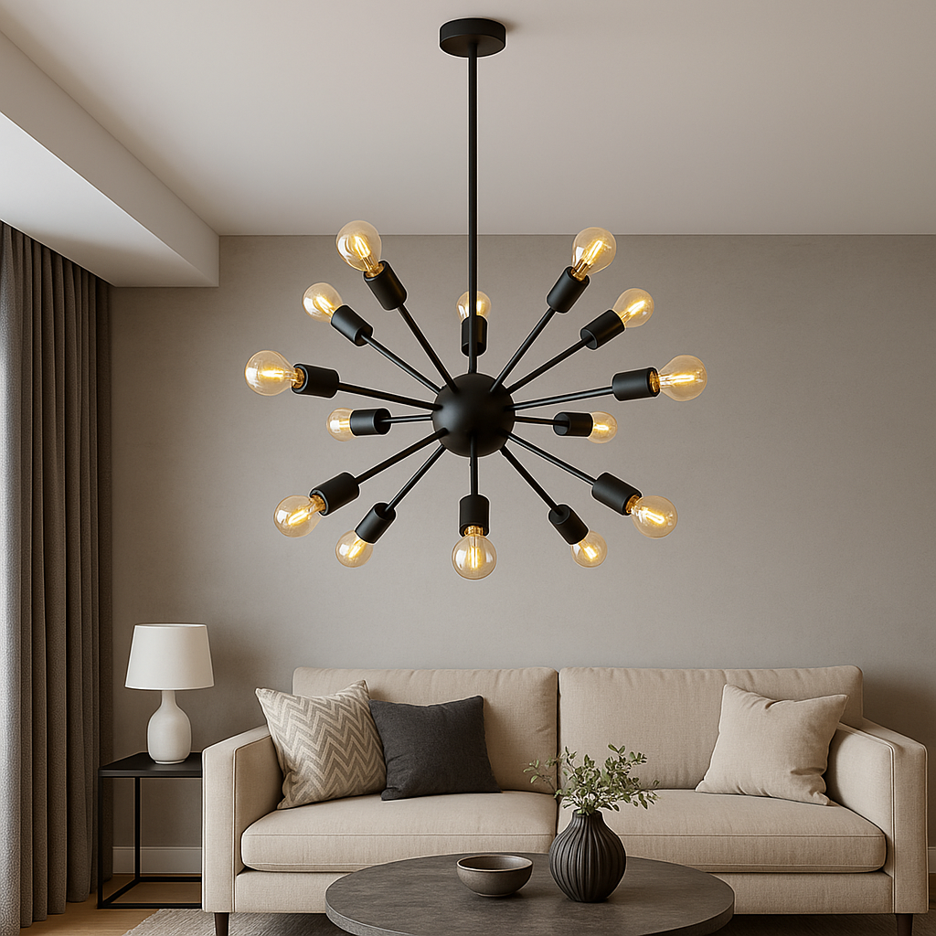 Atrévete a transformar tu espacio con esta imponente Lámpara Colgante “Estelar 15” – Chandelier de Lujos, diseñada con inspiración tipo Sputnik. Su diseño escultural y simétrico agrega dinamismo, elegancia y personalidad a cualquier ambiente moderno o industrial.