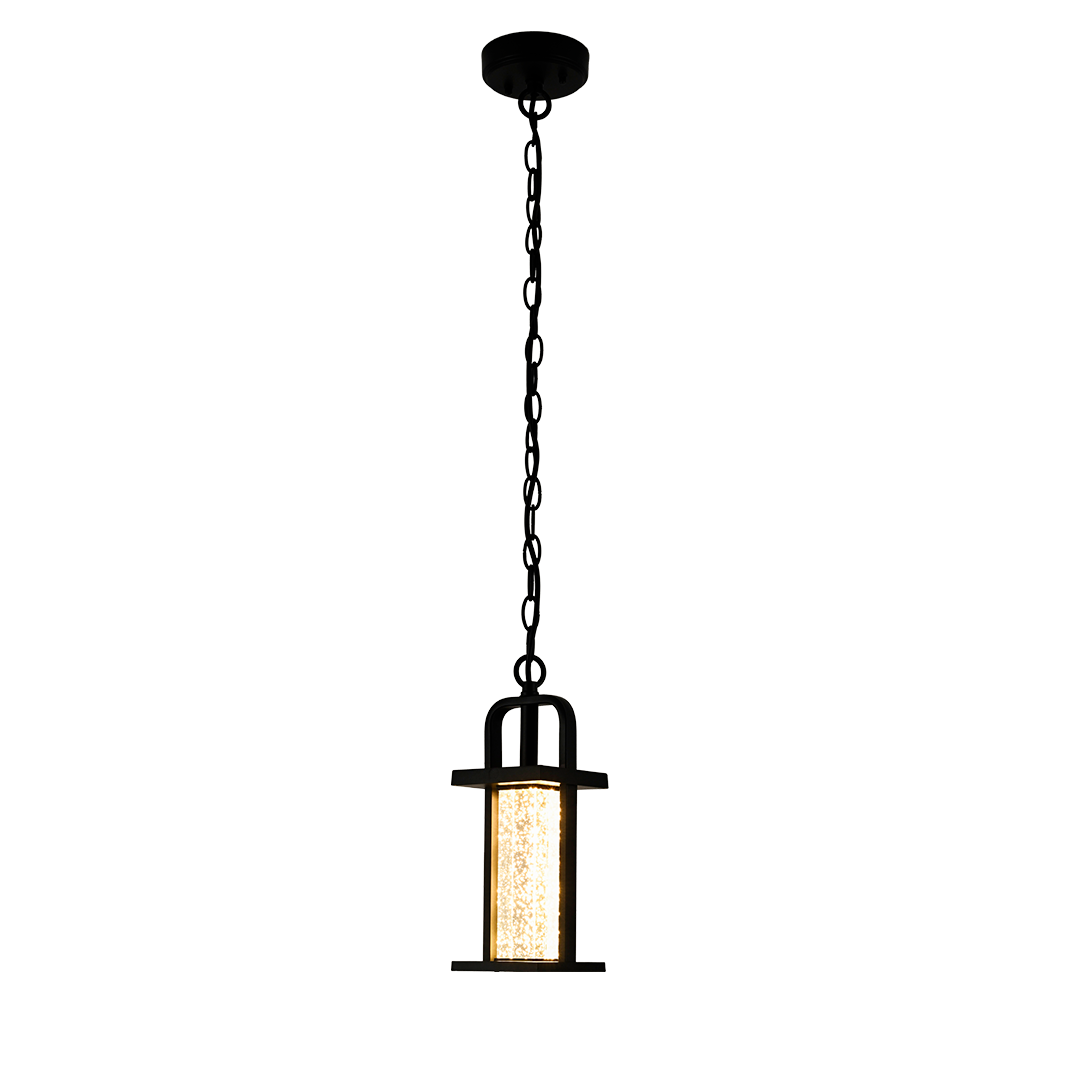 Con una altura destacada, esta lámpara es ideal para techos altos, como en áreas de comedor o entradas principales. La cadena al estilo vintage complementa perfectamente la estructura de la lámpara, mientras que el cristal crea una atmósfera cálida y sofisticada.