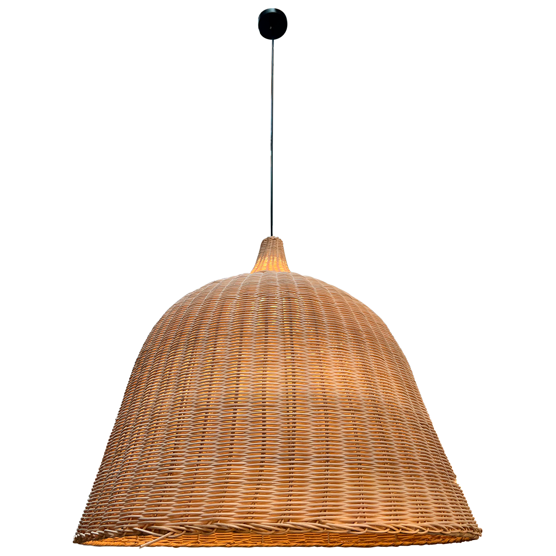 La "Lámpara Incanto" es una pieza única que fusiona la calidez del diseño natural con la modernidad del estilo contemporáneo. Su gran pantalla de mimbre, tejida a mano, se destaca por su elegante forma en cono invertido, creando una atmósfera relajante y acogedora en cualquier espacio. Con una altura de 181 cm y un diámetro de 60 cm, esta lámpara es perfecta para iluminar áreas amplias como comedores o salones, agregando un toque sofisticado y orgánico a tu decoración.