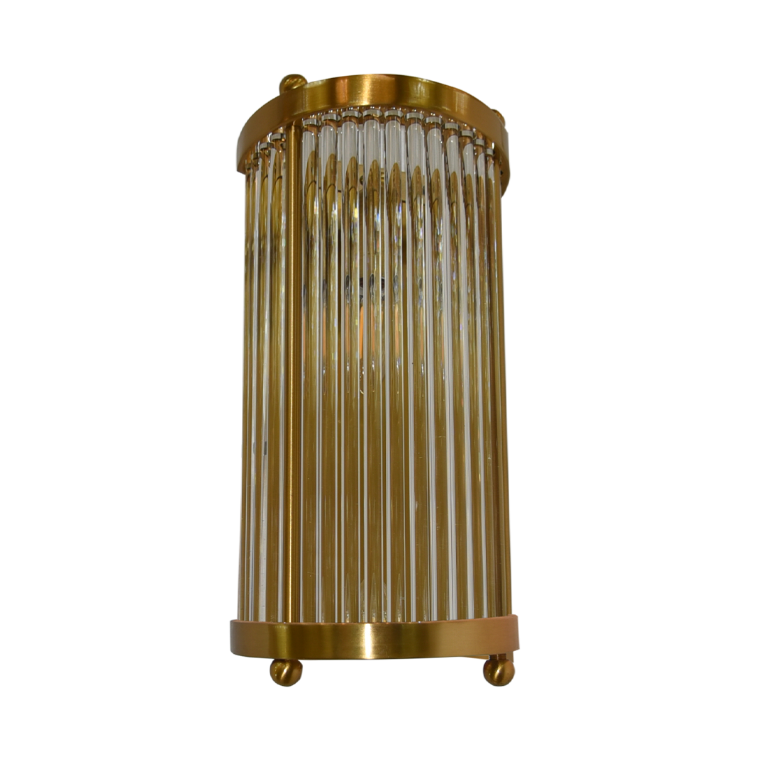 La "Lámpara Keanu" combina un diseño moderno con un toque antiguo, gracias a su vicera en vidrio horigamizado color dorado que le da un aire elegante y sofisticado. Su base cilíndrica vertical y el soporte contiguo, sujeto en los extremos, refuerzan su estilo único y contemporáneo, convirtiéndola en una pieza destacada en cualquier espacio.