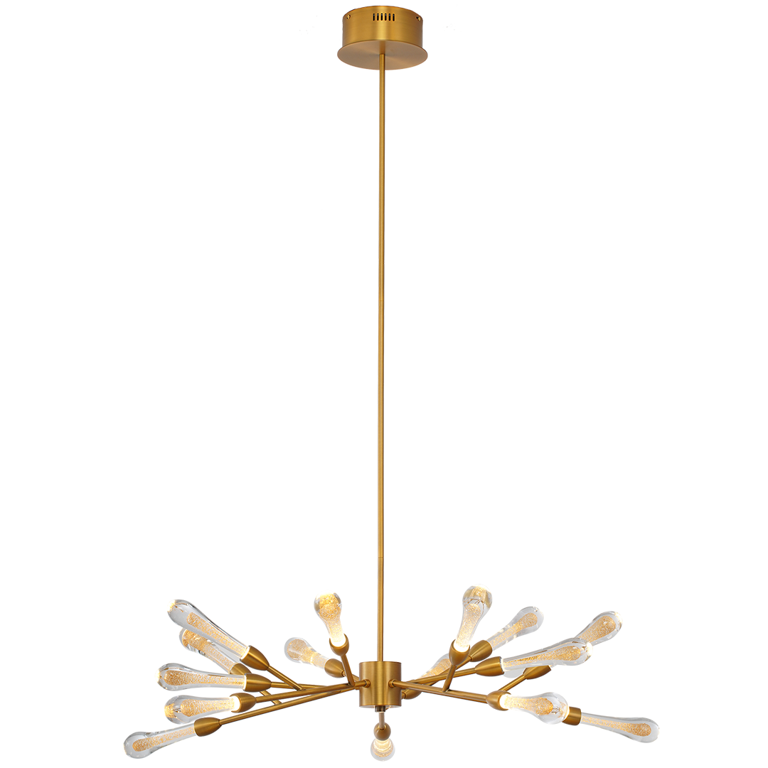 La Lámpara Kortson presenta un diseño de estilo candelabro moderno, que aporta un toque elegante y sofisticado a cualquier espacio. Su soporte en color dorado complementa perfectamente las bombillas LED tipo semi-gota en los extremos, creando una iluminación cálida y eficiente, ideal para ambientes acogedores y contemporáneos.