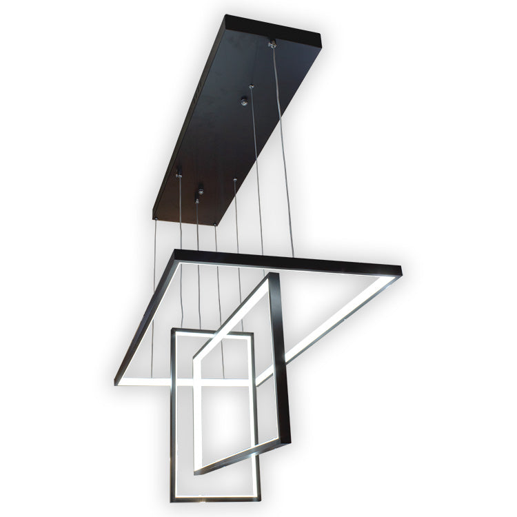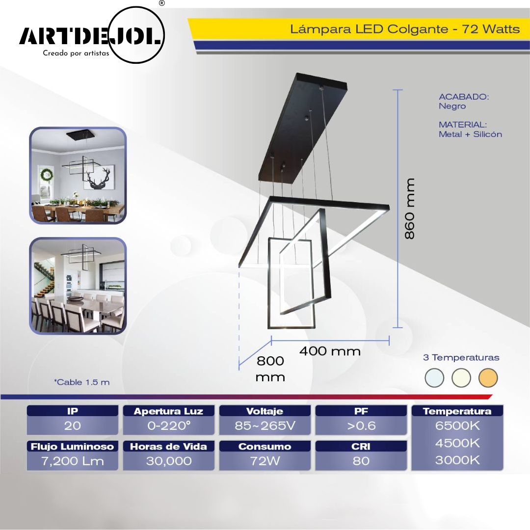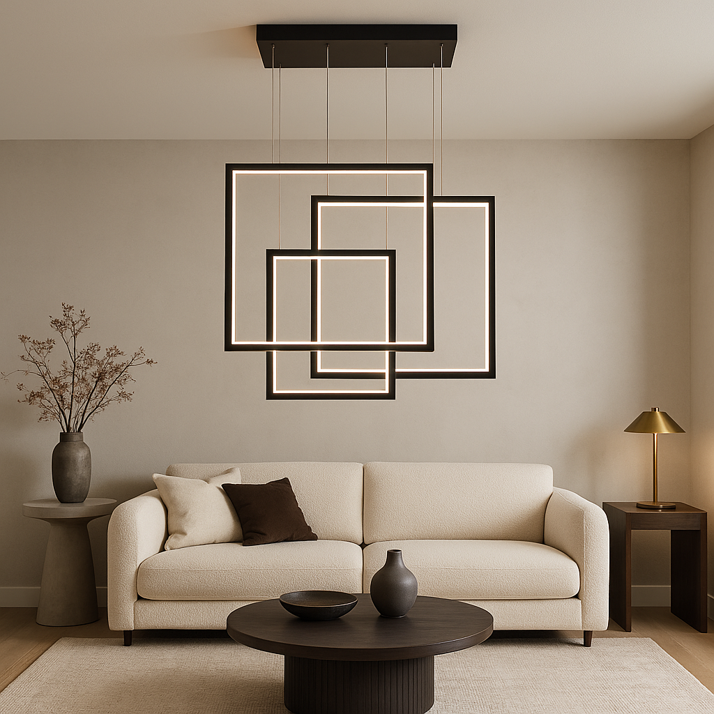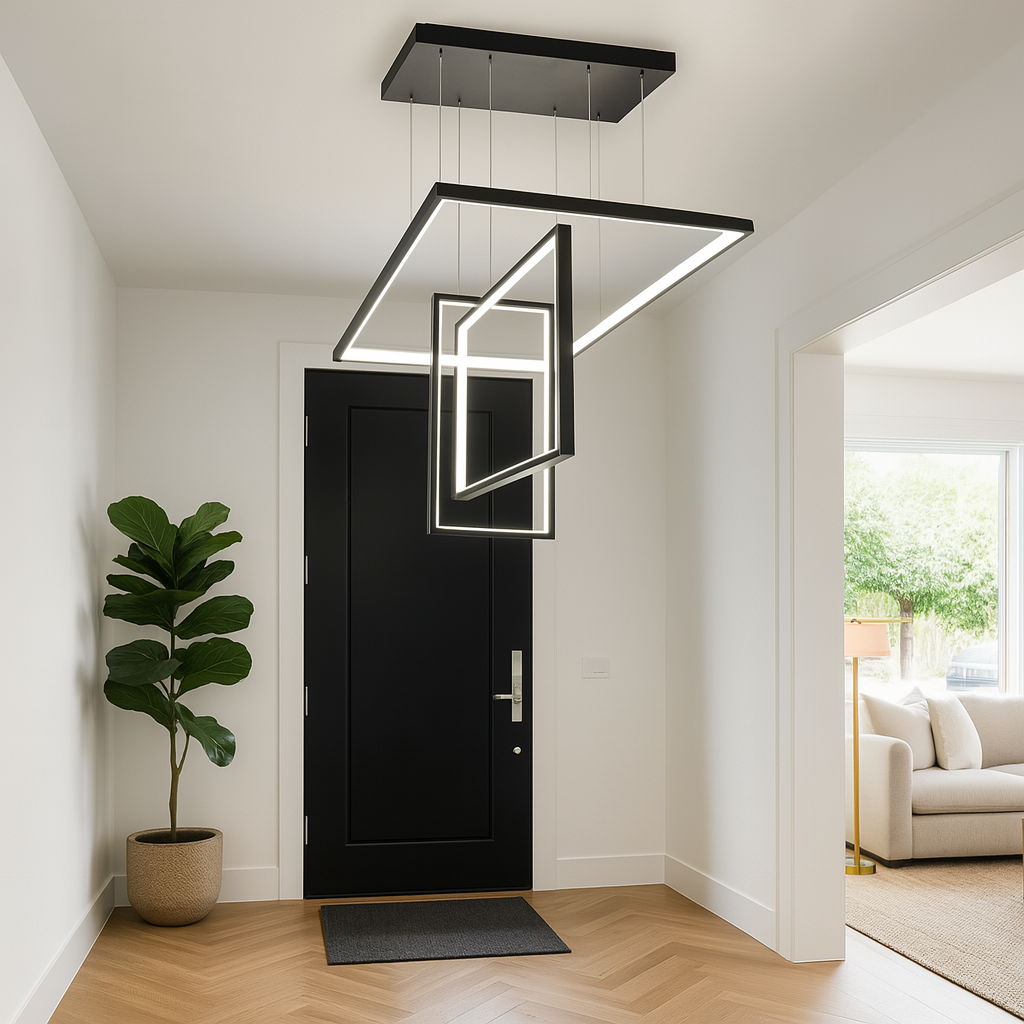 Convierte cualquier espacio en una obra de arte contemporánea con la lámpara colgante Geometría Infinita. Su diseño tridimensional de marcos entrelazados con luz LED integrada crea un juego visual sorprendente que eleva la estética de cualquier entrada, comedor o lobby moderno. Fabricada en aluminio negro mate con iluminación blanca cálida, esta pieza no solo ilumina: impone estilo, lujo y sofisticación.