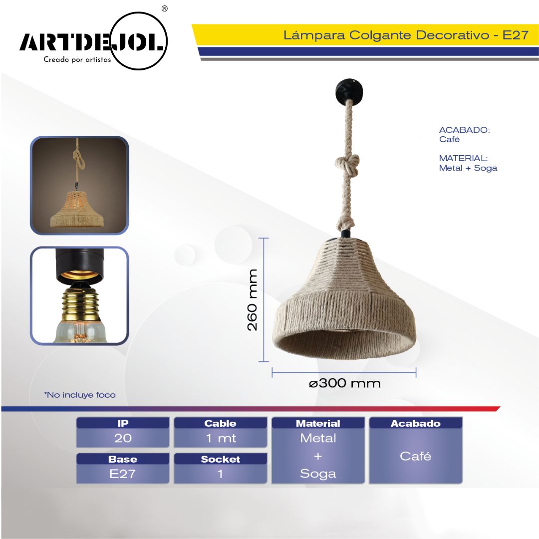 Ideal para comedores, terrazas techadas o interiores con acentos boho, su diseño con nudos decorativos y fibras trenzadas aporta textura y un toque relajado que invita a desconectar. Una pieza que ilumina más allá de lo visual: con alma.