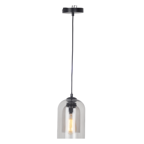 La "lámpara Marcín" destaca por su estética industrial moderna, ideal para espacios que buscan personalidad y carácter. Su pantalla de cristal ahumado con forma de campana suaviza la luz, mientras que su estructura en negro mate añade un contraste elegante. Perfecta para cocinas, barras o comedores contemporáneos.