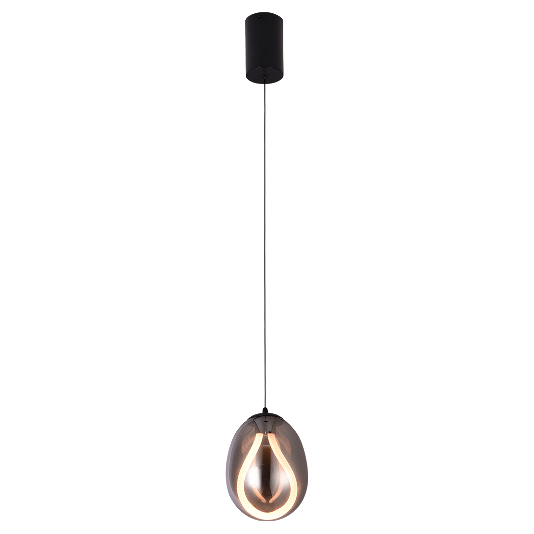 "La Lámpara Praga" es una lámpara colgante de esencia contemporánea y formas suaves. Su difusor de vidrio ahumado en forma de gota envuelve una tira LED cálida con un trazo envolvente, creando una atmósfera acogedora y elegante. Ideal para comedores, barras o rincones de lectura con estilo refinado y minimalista.