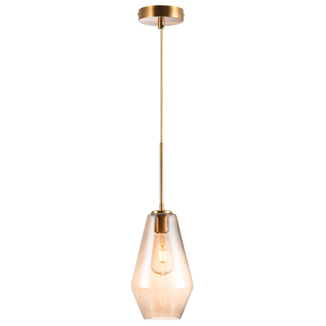 La "lámpara Ravello" combina minimalismo y sofisticación en un diseño geométrico y elegante. Su pantalla de vidrio transparente con sutiles matices dorados permite una iluminación cálida y envolvente. Con detalles metálicos en acabado dorado, es perfecta para cocinas, comedores o espacios modernos que buscan un toque de estilo refinado y funcional.