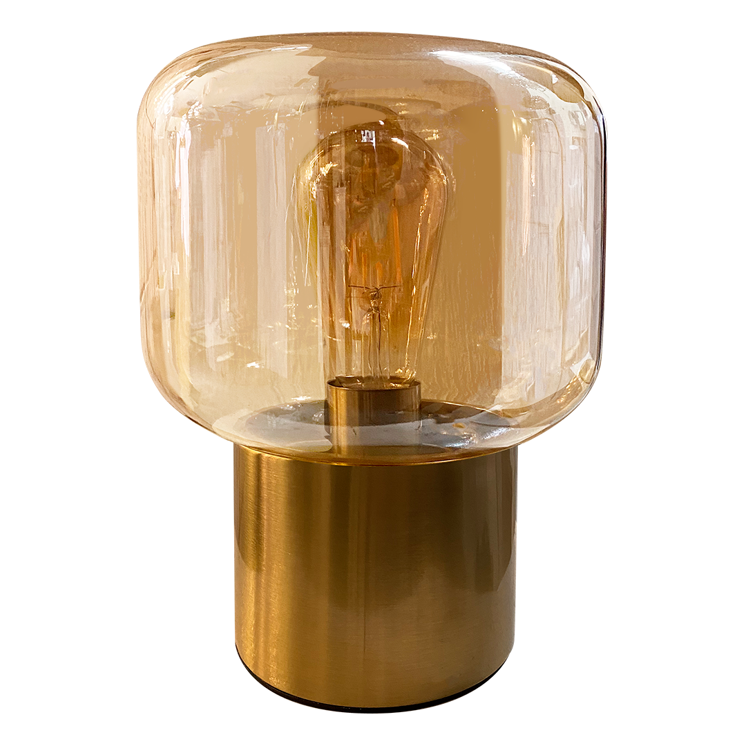 La "lámpara Torre" destaca por su diseño minimalista y elegante. Su base cilíndrica en acabado dorado aporta solidez y sofisticación, mientras que su pantalla de vidrio ámbar suaviza la luz para crear un ambiente cálido y acogedor. Perfecta para mesas auxiliares, escritorios o burós, esta lámpara combina funcionalidad con un estilo moderno y refinado.