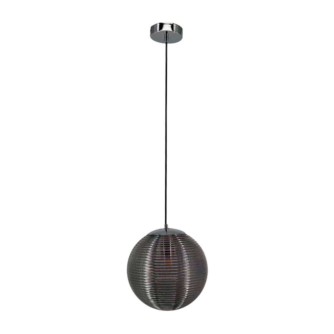 "La Lámpara Trento" destaca por su diseño moderno y elegante con acabado en negro cromado y líneas horizontales que envuelven su forma esférica. Esta lámpara aporta un efecto visual único y sofisticado, ideal para iluminar comedores, salas o recibidores con un estilo contemporáneo y vanguardista. Perfecta para quienes buscan un detalle decorativo con personalidad.
