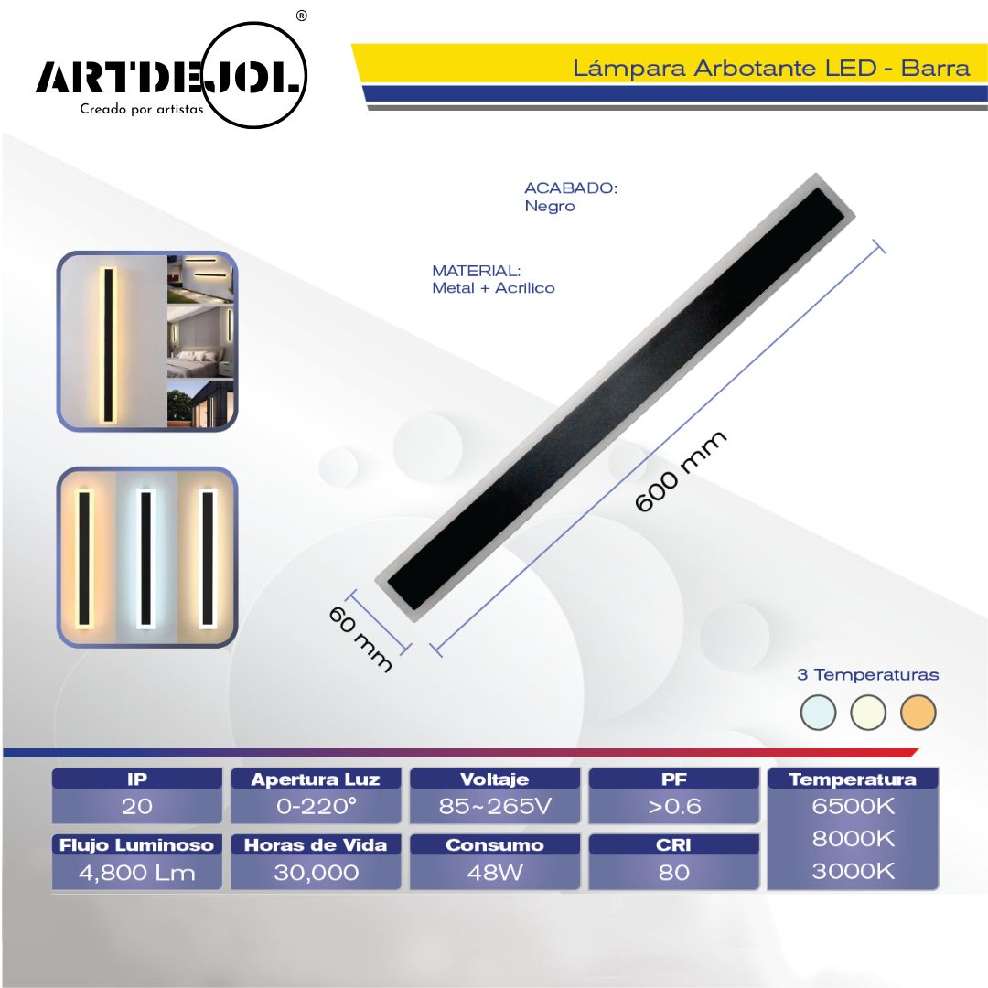 Agrega un toque moderno y sofisticado a cualquier espacio con nuestra Lámpara Arbotante LED tipo Barra. Con un diseño minimalista en acabado negro y cuerpo de metal + acrílico, esta luminaria es ideal para pasillos, recibidores, muros decorativos o exteriores techados.