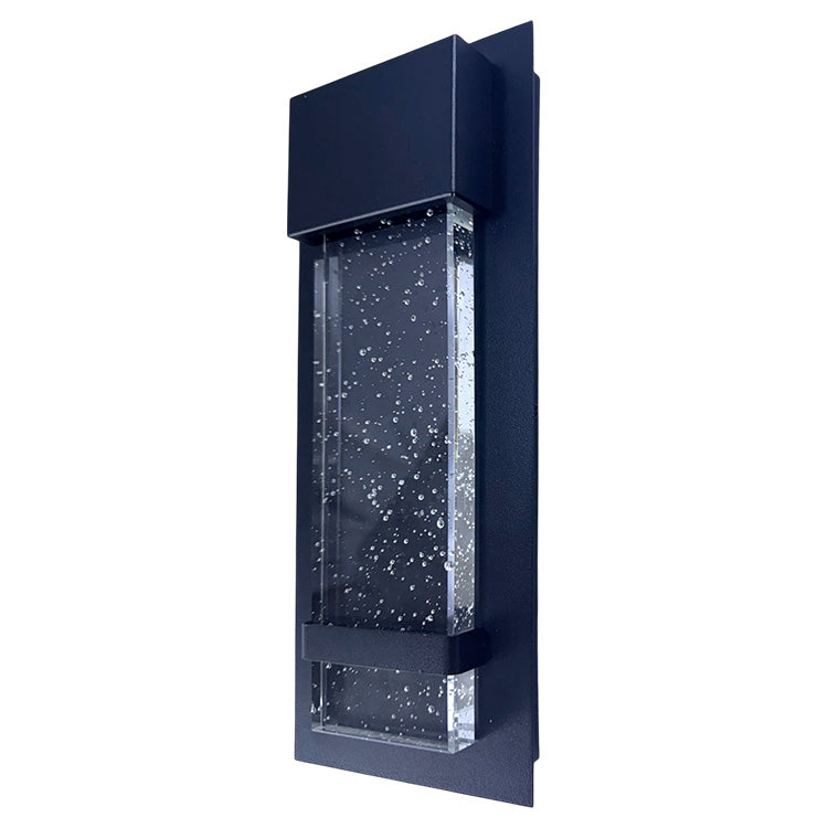 La Lámpara Luar transforma cualquier espacio exterior con su estética contemporánea y un toque de fantasía. Su diseño rectangular de líneas limpias resguarda un bloque de acrílico con efecto burbuja que crea una dispersión de luz envolvente y sofisticada.