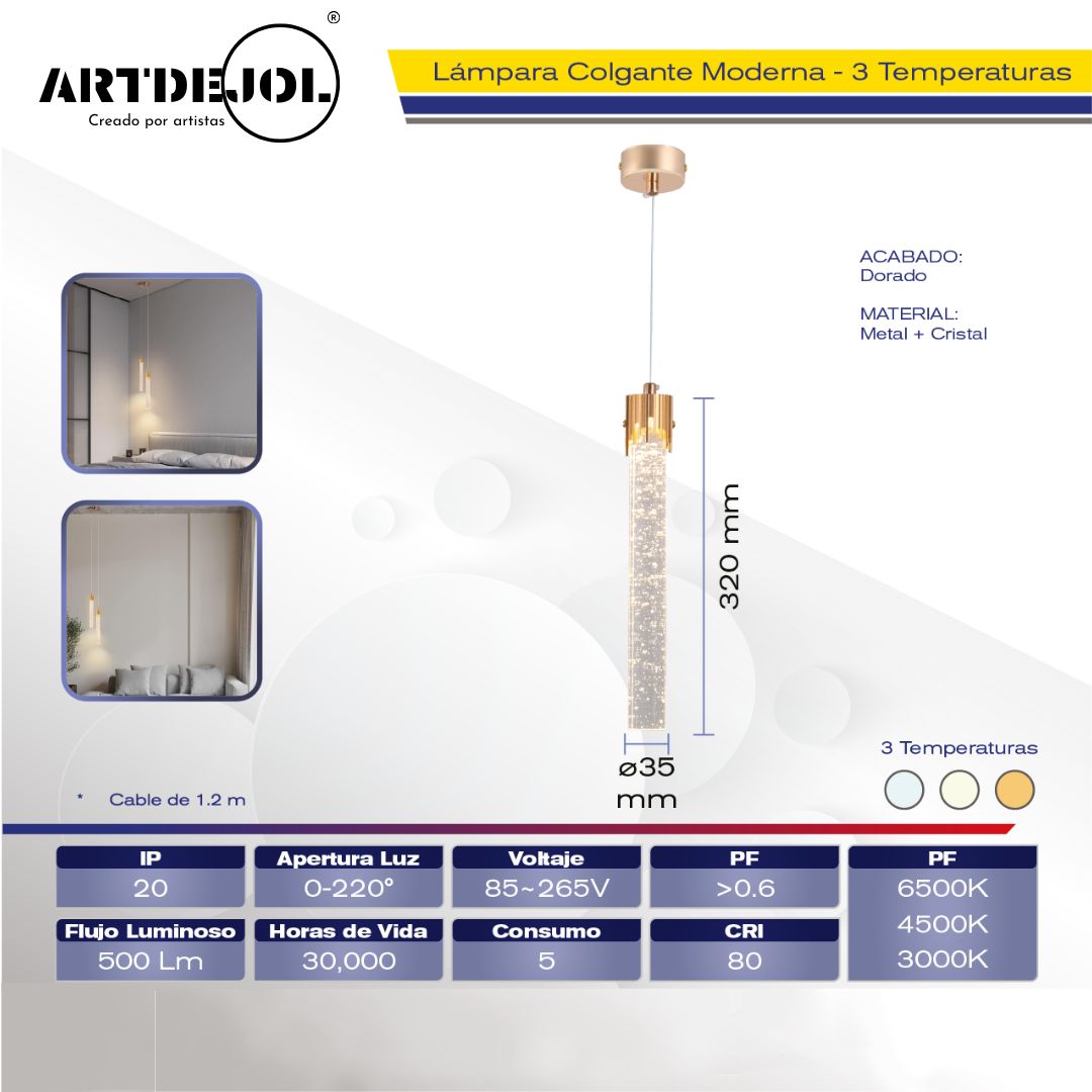 Perfecta para colocar en barras, pasillos o como acento decorativo en composiciones múltiples, esta luminaria añade un brillo sutil pero impactante en cualquier espacio.