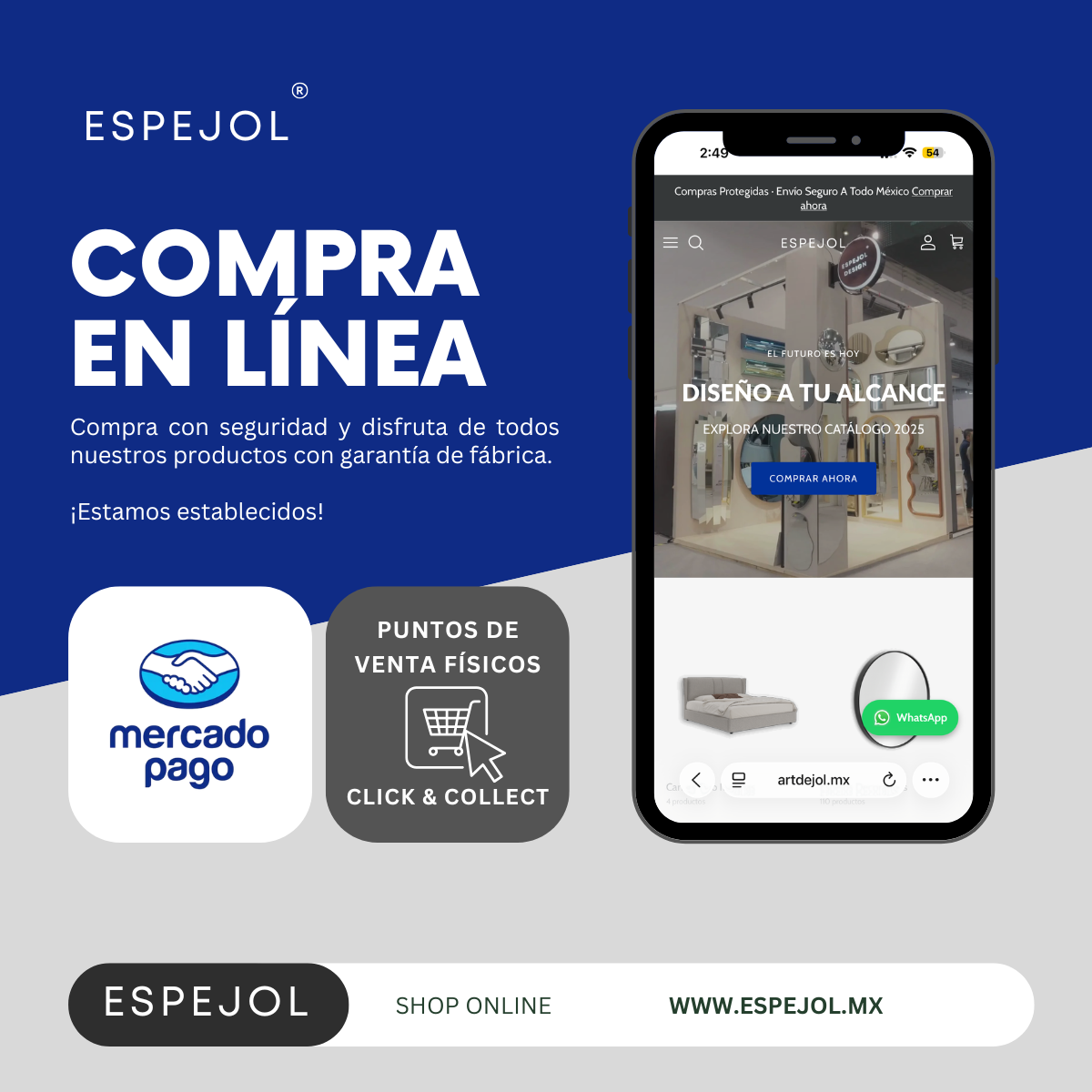 Cada creación de Espejol Design es concebida como un objeto de diseño: muebles, espejos y piezas decorativas que trascienden lo funcional. Inspirados en las tendencias globales, buscamos que cualquier persona pueda transformar su espacio en un lugar de estilo, sofisticación y equilibrio.