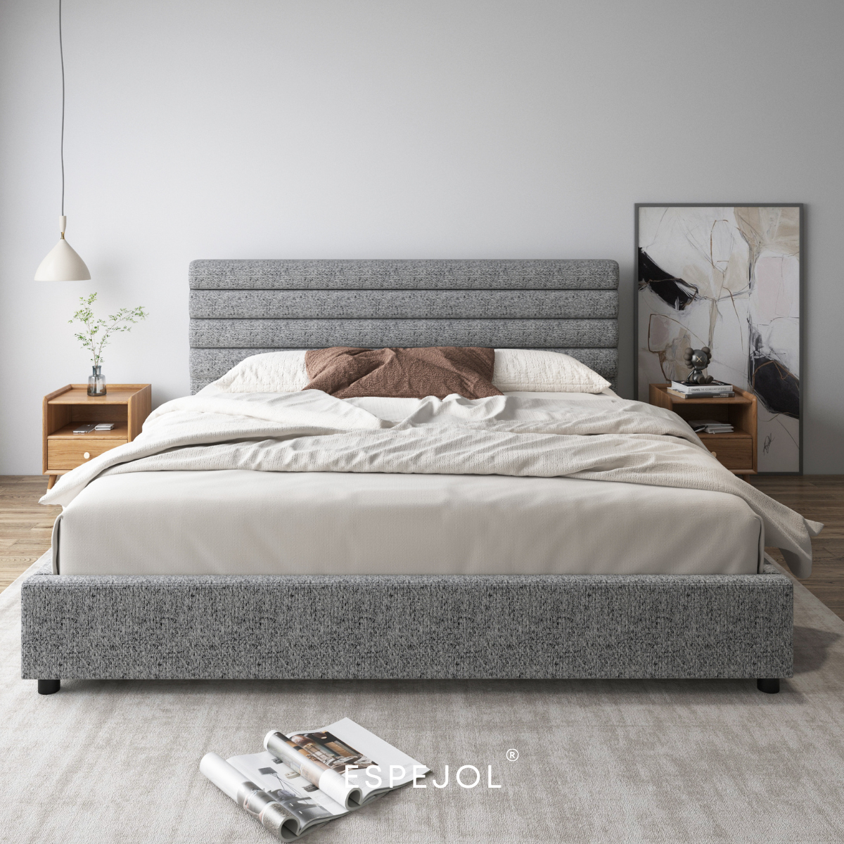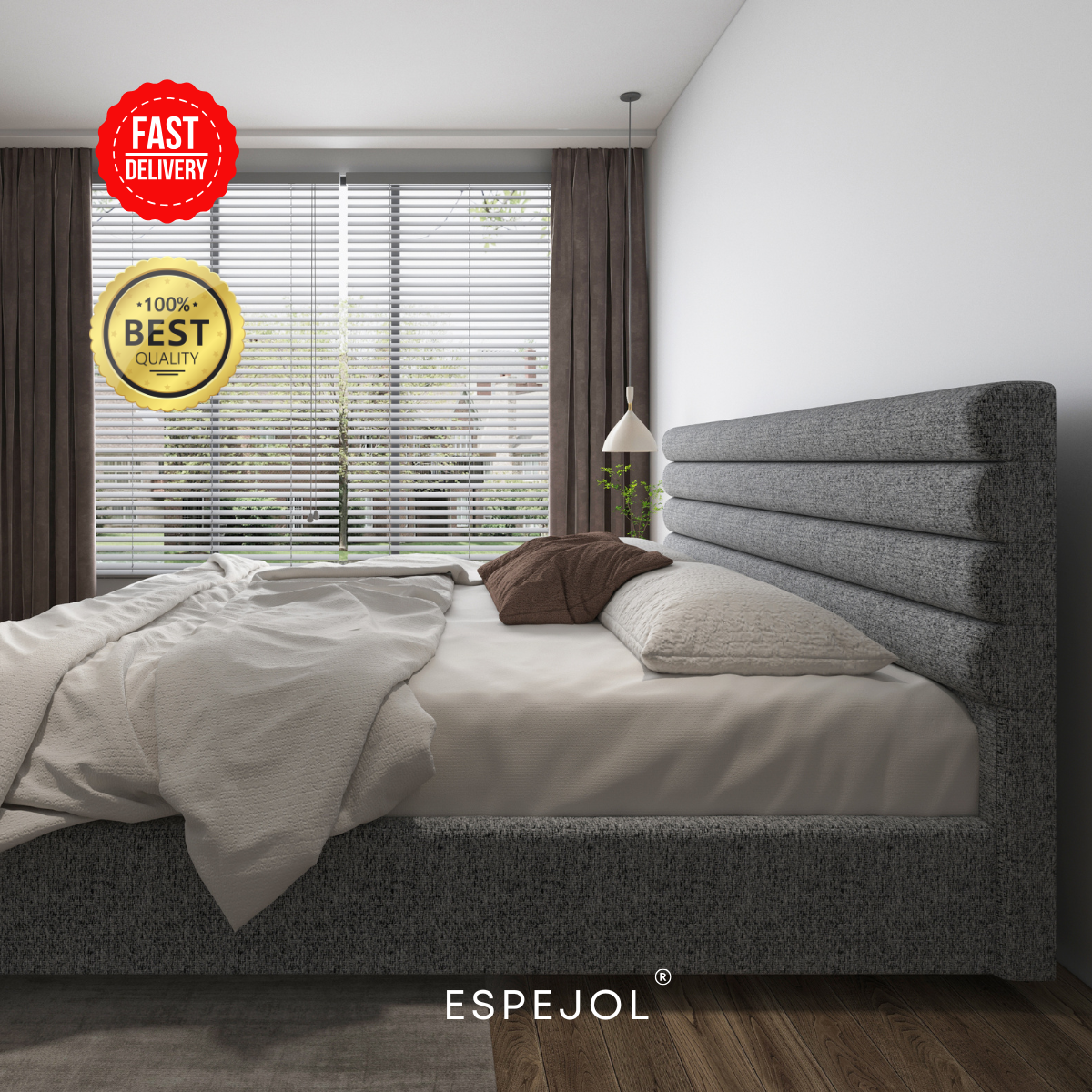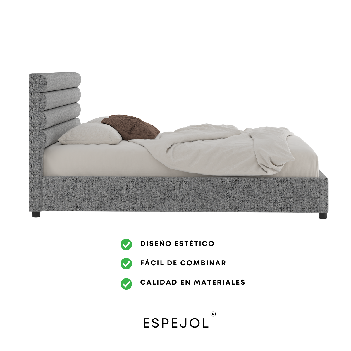 Transforma por completo tu habitación con la cama “Mosh”, una pieza de diseño moderno que combina sofisticación, comodidad y estilo premium en cada detalle.