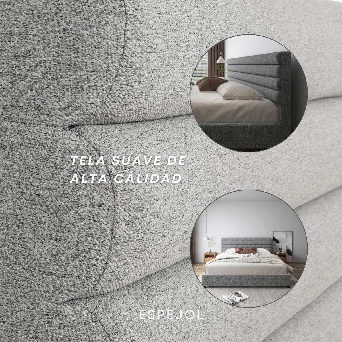Acabado en tela texturizada gris piedra, sobria y atemporal, ideal para proyectos residenciales de alto nivel, hoteles boutique o interiores con esencia contemporánea.