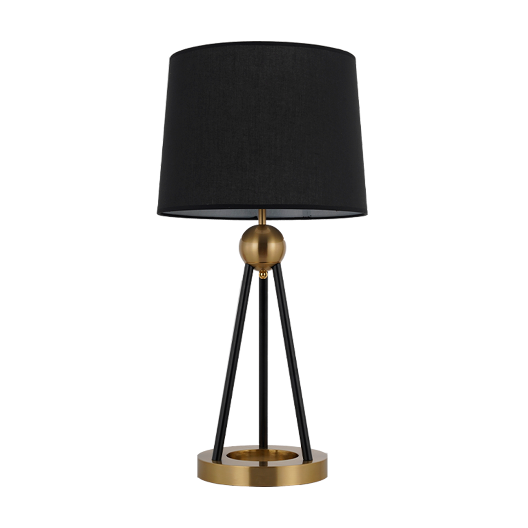 La "lámpara Malta" es una pieza de diseño moderno y sofisticado que equilibra elegancia y geometría con un estilo atemporal. Su base de trípode en acabado negro mate se une en una esfera dorada central, aportando un sutil toque de lujo y dinamismo visual. La pantalla en tono negro añade un aire de misterio y refinamiento, suavizando la luz para crear una atmósfera cálida y acogedora.